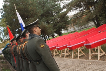 Напомним, что три года назад в Песках уже проходило перезахоронение. Тогда было погребено 243 солдата. Нынешнее перезахоронение завершилось возложением к могилам воинов цветов, венков и гирлянды Славы.