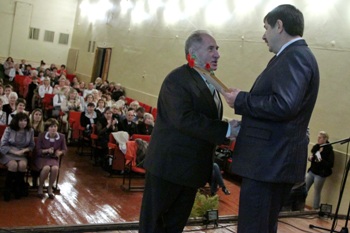 В числе поздравивших педагогов был депутат Псковского областного Собрания Владимир Яников, председатель районного Собрания депутатов Андрей Неофитов. За стремление к постоянному совершенствованию и организацию своей работы самые активные директора школ, их заместители, учителя-предметники, классные руководители и воспитатели детских садов были удостоены грантов Главы Псковского района. Поздравительные дипломы вручил Владимир Шураев, и для каждого, кто поднялся на сцену, он нашел слова благодарности. А вот признательность бывшему директору Родинской школы Вилору Черных может быть бесконечной, поскольку пятьдесят лет своей жизни он посвятил детям. «Радостно, что моя педагогическая деятельность берет начало именно в Псковском районе», - признался опытный учитель.