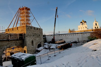 - В минувшие дни были установлены четыре деревянные балки - основание для будущего шатра, который постепенно начинают возводить, - рассказал и.п. председателя Комитета Псковской области по культуре Александр Голышев. - Это трудная и кропотливая работа. К началу февраля 2011 года все работы по восстановлению Власьевской башни должны быть завершены. На ее реконструкцию выделено 14 миллионов рублей из резервного фонда Президента РФ. Мы планируем создание смотровой площадки, подъем наверх будет со стороны Довмонтова города. Внизу должна разместиться небольшая музейная экспозиция, рассказывающая об истории древнего Пскова. А вход в ресторан останется на прежнем месте. С декабря все башни Псковского кремля будут находиться под круглосуточной милицейской охраной.