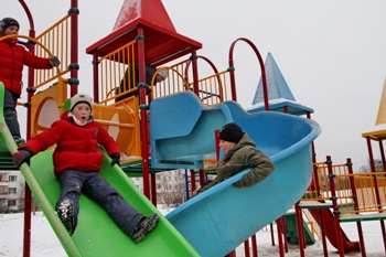 Ветеранов на улице Западной, не пустовали даже в серые дождливые дни. А с приходом зимы эти похожие на сказочные городки сооружения буквально осаждают ребята дошкольного возраста и постарше.