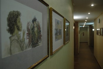 Мы на этот раз, например, открыли для себя отель «Арина Р.», на въезде в деревню Бугрово, который гордо называет себя литературным… Понятно, что в пушкинских местах такое наименование не режет слух, но накладывает на сотрудников дополнительные обязательства – как минимум, гость, входящий сюда, должен чувствовать влияние этой самой литературы. Администраторы, оформлявшие нас на проживание, конечно, стихами не говорили, но книгами были окружены достаточно, да и внимания нам уделили как надо. «У нас здесь за гостями ходят, как за детьми», - улыбается старший менеджер отеля Наталья Григорьева. В уютном фойе на входе на стеллажах разместилась библиотека, в которой и собрание произведений Александра Пушкина, и книги других известных поэтов и писателей. Что еще однозначно порадовало, так это рисунки и картины, которыми украшены стены в общих помещениях и номерах – художники Энгель На-сибулин и Игорь Шаймарданов известные в России пушкинисты, использующие в творчестве сюжеты из произведений поэта и сценки из деревенской жизни. Правда, можно было бы и в гостиничных номерах справить хотя бы небольшую библиотечку, чтобы постояльцы могли почитать на ночь, а не лежать, уставившись в телевизор. Хотя сами номера отвечают всем стандартам европейского отельного сервиса. Можно легко забыть, где находишься, особенно, если, сидя в номере, залезть в Интернет, который тут беспроводной, и пойти бродить по всему миру. А, выглянув в окно, с удивлением понять, что вокруг российские деревеньки и леса.
