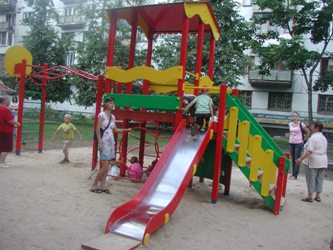 Только не устраивало жителей расположенных рядом домов то, что в их зеленом просторном дворе, кроме столба с баскетбольным кольцом и песочницы, куда давно не привозили песок, никаких развлечений для ребят не было. Поэтому открытие новой детской площадки и для малышей, и для взрослых стало долгожданным и радостным событием. Ребята дружно прокричали: «Спа-си-бо!», и жильцы искренне благодарили за такой подарок Главу администрацию города Петра Слепченко, который приехал посмотреть, как выполнены работы по монтажу детской площадки и благоустройству территории. На его вопрос, что еще нужно поставить во дворе, отвечали все одинаково: качели, скамейки и спортивную площадку. Но на этом разговор не закончился. Жильцы попросили Петра Михайловича зайти в соседние дворы, где старые и примитивные сооружения для отдыха ребят давно требуется заменить, а всю территорию благоустроить. Он пообещал взять этот адрес на заметку, подчеркнув, что детские площадки должны быть в разных микрорайонах города.