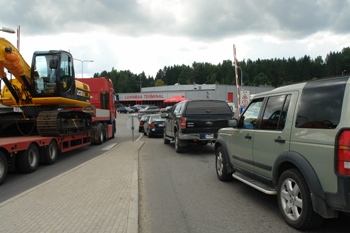 На пограничный пункт «Лухаама» мы явились в 17.30. И сразу встали в терминале в очередь, в кассу, чтобы заплатить за бронирование очереди – 1 евро и 2,5 евро за стоянку в зоне ожидания. Работали два оператора. Очередь двигалась медленно. Простояли целый час. Нам выдали распечатку с указанием ориентировочного времени пересечения границы - 23.00. В этом же зале стоял электронный планшет, который избавлял от необходимости стояния в очереди. С его помощью можно было зарегистрироваться не только в живой очереди, но и забронировать место на будущую поездку. Но очереди к нему не наблюдалась. После этого перегнали машину в зону ожидания. К нашим услугам имелись кафе, Интернет, факс, ксерокс, а также туалет с душем. Вся информация о движении очереди отображалась на табло в виде красной бегущей строки. Цифры были слишком маленькие, как и промежуток между номерами машин, оттого всем водителям приходилось напрягать зрение. Наш номер высветился раньше времени. В итоге мы покинули Эстонию около 22.00. Никакой разницы в пересечении границы с введением 1 августа новых правил мы не почувствовали.