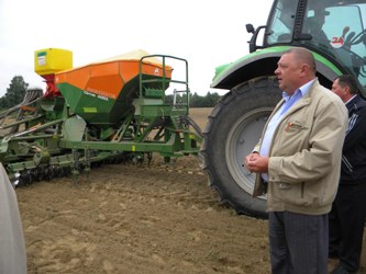 Российское животноводство по условиям труда и степени механизации в большинстве своем европейским уступает, но вот техники - современной, энергонасыщенной - на полях в последние годы начинает появляться все больше. С работой одного из таких - посевного комплекса немецкого производства Amazone специалисты познакомились на поле «Передовика», комплекс презентовал главный инженер хозяйства Владимир Никитин. Не вдаваясь детально в технические характеристики агрегата, скажем только, что комплекс за один проход наряду с посевом культуры позволяет производить и предпосевную обработку почвы, а всего одной заправки просторного семенного бункера достаточно для посева более десяти гектаров. Безусловно, мощная машина вызвала живой интерес специалистов из других хозяйств. Помимо посевного комплекса, в «Передовике» в этом году также приобрели шесть тракторов как отечественного, так и импортного производства, прицепной опрыскиватель, роторную косилку и два навесных погрузчика. Успешно работает агрегат для плющения зерна, работу которого и сам корм также смогли оценить участники семинара-совещания. Напомним, что такие «плющилки» в районе пока что приобрели единичные хозяйства, хотя в пользе его уверены многие.