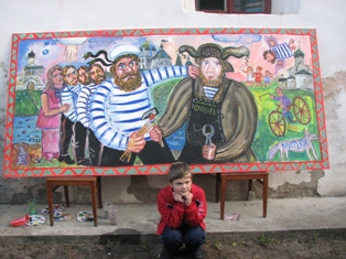Братание проходило через искусство. В День скобаря питерские художники, входящие в объединение «Митьки», обязались к концу торжества на большом холсте нарисовать высокохудожественную картину. Пока псковские кузнецы по соседству ковали скобы, металлические украшения и демонстрировали чудеса кузнечного искусства, митьки, став стеной с нескольких сторон холста, приступили к работе. За дело взялись Дмитрий Шагин, Андрей Филиппов, Андрей Кузнецов, Дмитрий Дроздецкий. Художники были настроены добродушно, самоиронично, что всегда характеризует стиль поведения митьков, в разговоре они часто употребляли слова «братушка», «сестренка», охотно отзывались на обращения и реплики зрителей, налево и направо раздавали автографы.