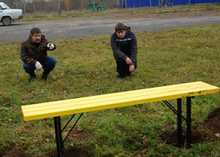 Еще летом на собрании поселкового совета депутатов было решено установить детские площадки в Верхолино, в Середке, в Гверздони. Дошла очередь и до Те-ребищ. Постоянно проживающих детей в этой деревне немного, но летом, благодаря дачникам, население увеличивается почти вдвое. Всего в волость было завезено 63 «элемента», большая часть которых уже установлена. Но вот вопрос - «как». Некоторые качели, например, были просто врыты в землю и не укреплены. Для детей катание на таких снарядах может быть занятием весьма небезопасным. Вот и решили взрослые исправить свои ошибки. В обеденный перерыв сотрудники администрации волости вышли на площадку.