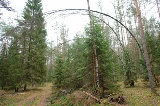 Интересующее нас место находилось в лесу, как выяснилось, всего-то… в пятистах метрах от оживленной трассы. В то время, мы его искали углубляясь в лес на 30 километров… Но даже в такой близи можно запросто заблудиться. Однако наш проводник, бывавший в аномальной зоне в конце 60-х годов прошлого века, безошибочно определил дорогу. Сначала ничего необычного не наблюдалось. Лес, как лес: сосны, мягкий ковер из опавших листьев, пронзительный запах сырой земли и «оглушающая» тишина. Но по мере приближения к «объекту», стали встречаться странные деревья. Вроде бы обычные молоденькие березки, но стволы их изогнуты дугой, как арки. Когда наша экспедиция спустилась в низину, казалось, здесь было больше свежего воздуха. «Это и есть тот самый камень», - показал один из проводников. Увиденное, нас шокировало...
