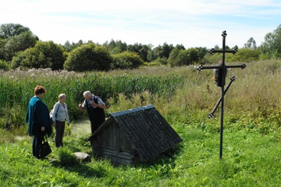 - Видите, слева от дороги стоит часовенка? В ней есть камень, а на камне небольшое углубление правильной прямоугольной формы, - рассказывает Николай. - Это след от Ольгиной ступни. Да не простой, а с чудесными свойствами. В этом углублении раньше скапливалась вода, которую местные жители считали священной и омывали ею лицо. По преданию на этом камне отдыхала Ольга со своей дружиною, объезжая северные владения. В нескольких метрах от камня бьет источник. Старожилы утверждали, что вода в нем обладает целительной силой. Ну, не знаю, как на счет здоровья, а вкус у нее действительно отменный, и в морозы она почти не замерзает...