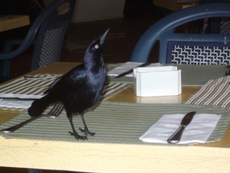 …За ужином на веранде в ресторанчике с нами решила познакомиться небольшая черная птичка, похожая на дрозда. Она смело подлетала к тарелкам и старалась ухватить кусочек побольше. Выяснилось, что это нагловатое пернатое создание -официальный символ Домини-каны – гепальмера. И встречается только на острове Гаити. Врагов у нее в природе мало. Кошки не в счет. Их на острове просто нет. Мы удивились, узнав об этом. Как ни печально, но их съели представители не очень обеспеченных слоев населения. А таковых тут большинство. Но, как говорится, не будем о грустном…