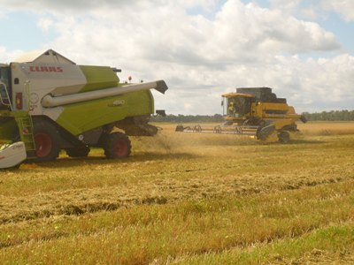 После того, как хозяйство начало практиковать опрыскивание всходов, комбайны и зерноток стали работать более производительно, а количество сорняков значительно поубавилось, здесь запланировали приобрести и второй агрегат для обработки посевов. Трудно сказать, какое из условий является основным в получении высоких урожаев - надежные семена, правильный уход за посевами, уборка без потерь или все же умение сохранить урожай. Скорее всего, важно соблюдать все в комплексе. Поэтому работа над высоким урожаем в «ПсковАгроИнвесте» начинается с приобретения «правильных» семян. Но если поинтересоваться мнением постороннего человека (к примеру, журналиста), то на мой дилетантский взгляд самым существенным из всех условий успеха является «правильная» техника. Например, посевной комплекс, который за один проход по полю позволяет делать несколько операций, тем самым сокращая время работы, затраты на горючее и снимая кадровую проблему. Или мощный зерноуборочный комбайн, за штурвалом которого его рулевой чувствует себя сродни космонавту. Такие агрегаты как раз сегодня работают на полях «ПсковАгроИнвеста», и одним из них управляет Вячеслав Владимиров. Ему есть с чем сравнивать, ведь раньше он работал и на бульдозере в дорожной отрасли, и на видавшем виды тракторе, а вот нынче впервые рулит новеньким немецким KLAASом российской сборки. Кстати, в этом году зерно убирают четыре современных комбайна - два KLAASа появились в этом году, еще два NEW HOLLAND (марка американская, но собирается в Татарстане) - в прошлом.