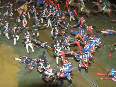 Николаю Белозерову интересен период 1812 года, поэтому он мастерил солдатиков всех армий, воевавших тогда. Русские войска французские - практически все европейские армии, входящие в войско Наполеона. Даже есть солдатики американской армии, которой Россия оказывала военную помощь... Идея слепить представителей всех армий родилась после покупки коллекции военных энциклопедий военного костюма, где присутствуют образцы формы всех армий мира, всех времен и народов. Приходилось много читать и другой справочной литературы. А вот идея сделать фрагмент Бородинского сражения продиктована самой жизнью. Людям нужно напомнить о войне 1812 года, которая вместе с ее героями давно забыта. И это точно также может повториться спустя много лет с Великой Отечественной войной. - Пробовал лепить скульптуры людей и животных - не понравилось. Да и неинтересны они никому. Как-то во время службы, а служить довелось в ракетных войсках стратегического назначения, по просьбе командования сделал из пластилина макет местности и точные копии секретных ракет в мельчайших подробностях. Начальству все очень понравилось, кроме подлинности. Пришлось переделать ракеты, придав им обобщающий образ. Другое дело - лепить солдатиков. Через историю военного костюма могу выразить всю глубину эпохи, в которой все отталкивалось от войн. Делаю внешний вид солдатиков максимально достоверными их эпохам, вплоть до последней пуговицы и галуна. Тщательно подбираю цвет костюмам, чтобы соответствовали действительности. Каждый полк в русской армии, да и в других армиях мира имел свой цвет и отделку. Это необходимо было для упрощения управления войсками на поле боя. Например, у одного из полков французских драгун цвет отделки мундиров был аврорового цвета (нечто среднее между персиковым и оранжевым цветом). Если под рукой нет пластилина нужного цвета, приходится смешивать. Стараюсь делать не плоские фигурки, а передать им динамику. Сделать на одежде складки или загнуть лацкан, будто от случайного порыва ветра. Либо подсветить цветом фрагмент другой одежды. Тогда они оживают. Сложнее, но интереснее делать, чтобы у рыцаря снимался шлем, поднималось забрало, у кавалериста вынималась из ножен сабля. Если делаю современное оружие, то, к примеру, у миниатюрного пластилинового пистолета Макарова передергивается затвор, вынимается обойма. Но мне далеко до Левши, подковавшего блоху. Пластилин имеет определенный предел пластичности. Очень маленькие детали в руках плавятся.