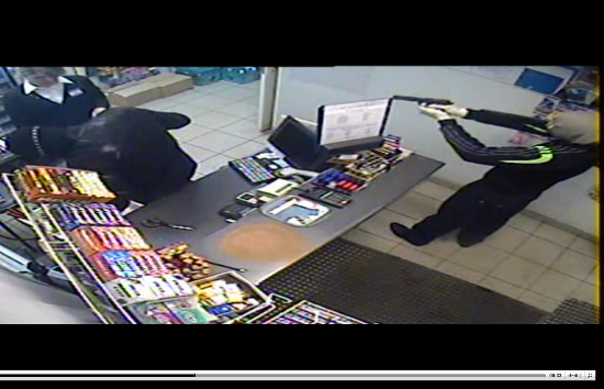 Преступники, орудовавшие на АЗС, попали в объектив видеокамеры, расположенной в помеще-нии. Один держал женщину на мушке, второй складывал деньги в пакет или сумку. У первого, кстати, очень приметная спортивная куртка с крупными салатовыми полосами в верхней части рукавов.