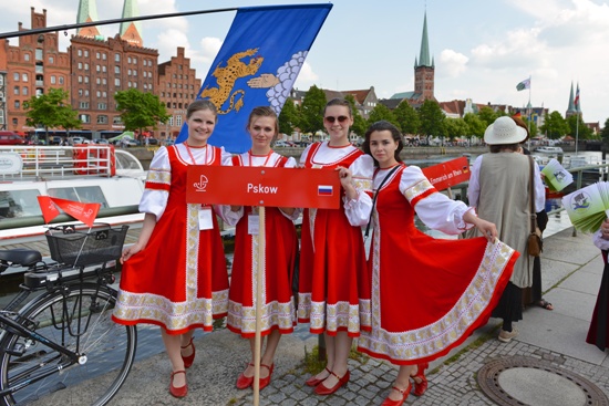 Большое число разноликих творческих коллективов, причём, очень высокого профессионального мастерства съехались в эти дни в Любек. Артистов можно было встретить везде: не только на приспособленных сценах, но и на любом уличном пятачке звучала музыка, песни, гремели медью оркестры, били барабаны, показывали цирковые номера жонглёры и акробаты. Псков представил в этом клубке искусств хорошо известный не только на Псковской земле, но и во многих странах Ансамбль «Сказ» имени В. Румянцева. Псковские артисты встретили здесь своих прежних поклонников и обрели многочисленных новых. Без ложной скромности скажем, что коллектив стал одной из изюминок не только российского уголка Ганзы, но и всего Любека и всегда собирал огромные толпы зрителей. Наши артисты за три дня пребывания на Ганзе выдали восемь полноценных концертов. Кто хоть раз выходил на сцену, и, знает, сколько сил нужно вложить в каждое из выступлений, несомненно, оценит. А тем более, когда высота сцены не отделят артиста от зрителей и работать нужно глаза в глаза. Танцоры, музыканты, исполнители – никто не мог допустить фальшивой ноты, неточности, случайностей, которые сразу бы стали заметны. Однозначно, что без многочисленных артистов из всех собравшихся здесь городов, современной Ганзы не было бы.