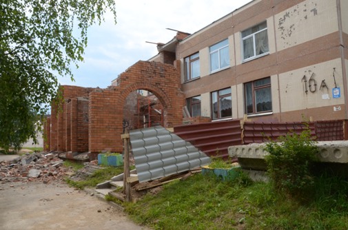 В работах задействованы около десятка рабочих с автокраном. Разбирают не все беседки, а лишь те, что пристроены непосредственно к самому зданию садика. По словам работников садика, во время постройки здания планировали, что в этих кирпичных беседках дети смогут играть в плохую погоду, не выходя во двор, но будучи при этом на свежем воздухе. В других садиках обычно стоят отдельные веранды, и дети, чтобы добраться до них, должны идти под дождем. К сожалению, по неизвестным теперь причинам затея провалилась, и капитальные строения не использовались по прямому назначению. С течением времени строения и вовсе пришли в негодность, и стали представлять опасность для детей, а другими гражданами в основном использовались как общественный туалет.