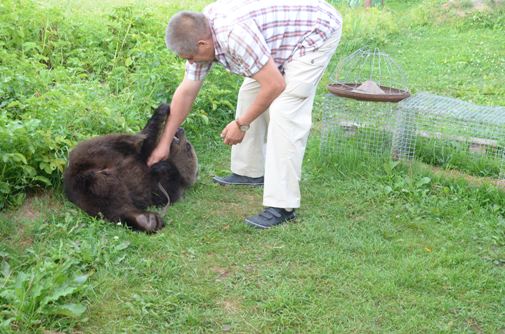 Здесь Маше очень нравится. Её дневной рацион на 85 процентов состоит из растительной пищи. В сутки медведю надо всего полкило мяса и около килограмма рыбы. Любит Маша и сладости, но лучше их не давать. В отличие от природных медвежьих «десертов» меда и малины, сахар в конфетах и шоколадках плохо влияет на состояние шерсти. Мишка может даже облысеть. Кроме того, Маша с удовольствием щиплет травку. Когда хозяин питомника Геннадий, выводит ее на прогулку, Маша совсем, как корова, с удовольствием пропалывает окрестности. Пасущийся медведь на поводке - то еще зрелище. Но, конечно, лучше наблюдать его издали. В дикой природе человек - гость, не всегда желанный.