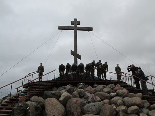 В Изборске состоялась торжественная церемония землеприношения к памятнику единения россиян - Священному холму 27 августа, к подножию памятника добавилась земля с вернувшегося в состав России Крымского полуострова В мероприятии приняли участие около 400 человек: делегации из городов и районов Псковской области Крыма и Севастополя священнослужители воины Псковского гарнизона представители молодежных и общественных организаций официальные лица а также члены Изборского клуба» во главе с вдохновителем создания памятника Александром Прохановым. Церемония началась с молебна о погибших воинах защищавших русскую землю. Затем перед собравшимисся выступил врио Губернатора Псковской области Андрей Турчак: «Это не просто точка на карте для нас это место единения всего многонационального русского, народного место нашей духовной силы и исторической памяти», заметил врио Главы региона. Он пожелал всем псковичам «крепости духа, крепости сил».