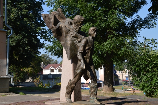 Связь другого «псковского» писателя с Пушкинскими Горами тоже более очевидна, чем с областным центром. Но маркировать его силуэтом мы предлагаем именно Псков. К тому же, в Пушгорах совсем недавно открыли его дом-музей. Разумеется, речь о Сергее Довлатове. В 2001 году завлит Псковского театра кукол обнаружил в архиве его неопубликованную пьесу «Человек, которого не было», написанную специально для этого театра. Премьерный показ спектакля «Человек, которого не было» по пьесе Сергея Довлатова состоялся в Псковском театре кукол 29 ноября 2003 года. Мировая премьера имела грандиозный успех. В память о грустной улыбке человека, «который был», хотелось бы снабдить какой-нибудь отметкой здание театра.