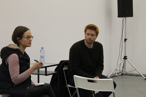 Джо Мёрфи общался с псковичами через Алису Терехову, переводчицу и автора русских субтитров спектакля, но всё равно мгновенно расположил к себе публику: