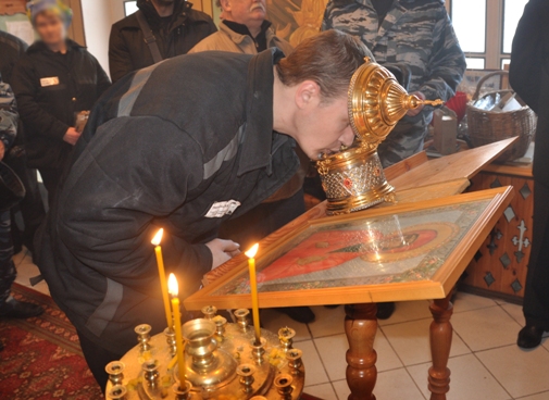 «Сие дарование для религиозной жизни - событие великое, ведь далеко не в каждом храме имеется подобная реликвия», - цитирует протоиерея церкви Покрова Божьей Матери Николая Егорова пресс-служба УФСИН России по Псковской области. Перед передачей мощей в храме изолятора прошло богослужение. По его окончании протоиерей Иоанн Муханов поздравил руководство и сотрудников пенитенциарного ведомства с этим событием и напомнил о милосердии и покаянии, которые должны присутствовать в душе каждого православного человека. После чего все присутствующие смогли приложиться к святыне.