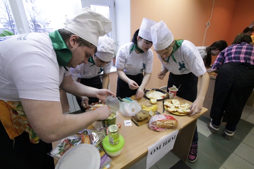 Её симпатии, а заодно и первое место по праву достались «Клёвым пельменям». Покорили Ирину не столько пельмени (и нам показавшиеся немного сыроватыми), сколько десерт. На призывы Александра Робина «облить картошку йогуртом» никто не отреагировал, а потому десерты у команд получились примерно одинаковыми. Но «Пельмени» приготовили свой десерт в яблоке, украсив его скрупулёзно вырезанными из фруктов цветочками. Впрочем, их «конкуренты» не расстроились. Как и положено празднику, завершился он абсолютно эксклюзивным банкетом. Студенты оказались куда смелее шеф-повара и с удовольствием пробовали блюда друг друга.