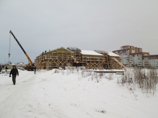 Это первый дом будущего социального городка для пожилых людей. По словам начальника участка Игоря Соловьева, объект начали возводить 4 месяца назад. Погода позволила рабочим не сбавлять темп, строители не уходили даже во время новогодних каникул. В настоящее время в двухэтажном здании завершаются кровельные работы и прокладка электросетей и отопления.