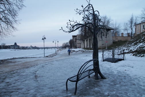 - Вот эскиз, он воспроизведён очень похоже, - показывает рисунок автор. - Понятно, что работали конкретно с него, но идею переврали. Дерево должно было быть выше, скамейка - удобнее, чтобы на ней можно было сидеть. Вещь же не только декоративная, но и функциональная. Кроме того, в моём эскизе предполагалось, что дерево будет образным – с тонкими веточками, с берёзовым почками, которые звенели бы на ветру. Под мостом должен быть водоём, рядом - беседка для влюблённых, потому что недалеко ЗАГС, откуда люди шли бы сфотографироваться, замочек на мост повесить. А дерево и скамейка вообще плани-ровались рядом с Ольгинским мостом.