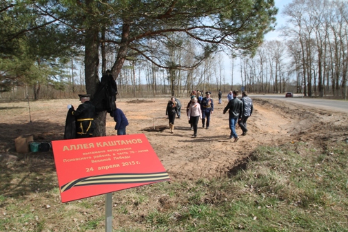 В этот день ветераны, ученики Остенской школы, руководители предприятий Псковского района и представители муниципалитета заложили памятную аллею из каштанов и туи. Экологическую акцию приурочили к 70-летию Победы в Великой Отечественной войне.