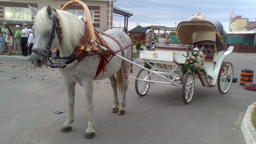 Если вы решите, что по каким-то причинам железный конь не подходит для вашего праздника (скучно, заурядно, неромантично), то можете найти настоящего. Есть вариант арендовать свадебный фаэтон – легкую коляску с откидным верхом, в которую запрягают лошадку. Ценник такого удовольствия начинается от 3000 рублей за один час поездки.