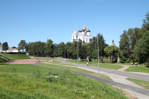 Вода после дождей не будет задерживаться на поверхности новой набережной. Благоустройство выполнено с понижением в сторону реки с целью обеспечить естественный уклон для отвода дождевых стоков. Ливневые воды сначала попадут в водоочистительные сооружения – вот эти зелёные ёмкости, а лишь затем в реку Пскову.