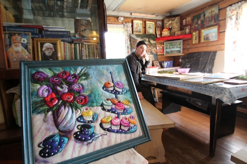 Впрочем, студийные работы выходят за пределы творческой избушки. Например, в этом году в печорской библиотеке на День города состоялась выставка работ студии.