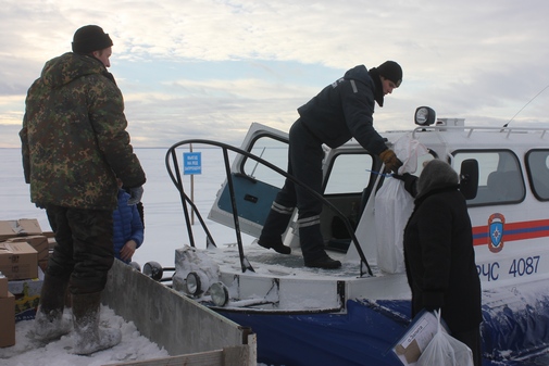 Помимо продуктов питания, лекарств, товаров первой необходимости, корреспонденции, пенсий спасатели доставляют на удаленные территории врачей и других специалистов, либо забирают с островов больных людей, которым требуется профессиональная медицинская помощь. В этот раз на остров прибыл почтальон, который привез пенсии жителям острова и несколько мешков с письмами, газетами и посылками - их с нетерпением ждали местные жители.
