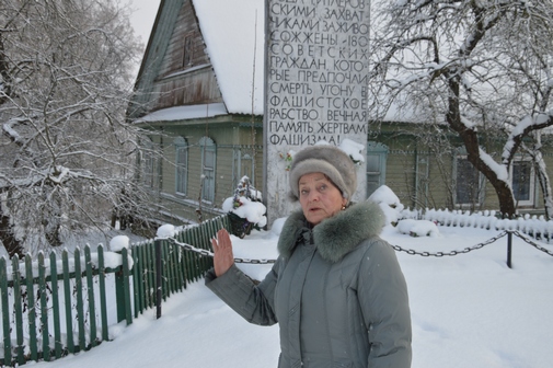 За это каратели устроили жестокую расправу над местными жителями - 180 человек загнали в здание и подожгли. Убежать из деревни удалось только Прасковье Цветковой вместе с двухлетней дочкой Линой и 12-летним сыном Валентином. Больше никто не выжил.