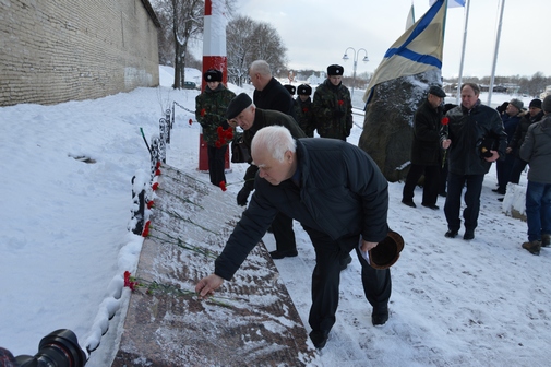 - Для нас, ветеранов, это хороший повод собраться здесь, поздравить друг друга, вспомнить о подводниках, которые защищали морские рубежи нашей Родины, - произнес в своем выступлении капитан первого ранга, секретарь Псковского регионального отделения Российского морского собрания Виктор Михайлов. - На пяти плитах выбиты имена 47 подводников, погибших в годы Первой мировой и Великой Отечественной войн. Всего погибло 3636 подводников. Казалось бы, на весь Советский Союз это мало. Но эти люди сделали многое в деле победы над фашистской Германией.