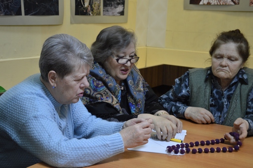 - Сейчас очень модно носить шарфик с бусами, а еще можно сделать шарфик-бусы, - рассказала Светлана Евтихиевна своим «ученицам». - Я сейчас над этим буду работать и потом вам расскажу.