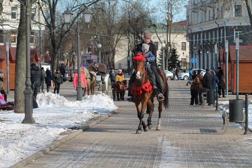 Ещё раз уточняю, что я из тех самых создающих проблемы СМИ, но Елена от разговора не уходит. Она поясняет, что за своей лошадью убирает почти всегда. Убирала, если быть точнее: «философское» отношение некоторых коллег к «плодам» своих питомцев на асфальте, по её признанию, меняет Елену. Редко, но и она теперь позволяет себе не спуститься с лошади после характерного шлепка сзади.