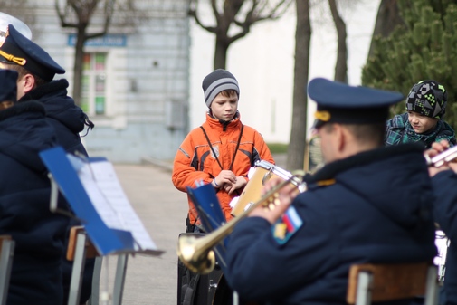 А вот в Летнем саду стояли ряды лёгких кресел, которых даже не хватило всем желающим послушать музыкальных «силовиков». Да и «оркестровая яма» была под навесом - от возможного дождя. Питерские гости играли и военные песни времён Второй мировой, и даже этническую музыку. Инструментальные номера чередовались с пением солистов ансамбля. Пассажиры, ожидающие автобусы на остановке, как один, смотрели не за приближающимся транспортом, а в сторону памятника «Пушкин и крестьянка».