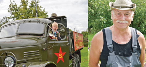 Не заметить выставку ретротехники под открытым небом в деревне Тешевицы, что на дороге Псков-Печоры, просто невозможно: уже с трассы приковывают взгляд раритетные машины, а порой и на въезде стоит какая-либо автодиковинка, да еще и украшенная развевающимся флагом. В нашем случае приветственного знака не было, но и в ворота ломиться не пришлось - все открыто. Правда, автора музея Александра Илларионовича Попова пришлось поискать, нашелся со сварочным аппаратом под подготовленным к покраске с заклеенными фарами и слоем шпатлевки древним «УАЗиком».