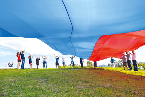Не остались в стороне и молодежные организации. Их тема — флэшмобы, а организационное пространство — Интернет, социальные сети. Огромный флаг России впервые развернули два года назад, в День Крыма, и с тех пор именно этот флаг стал раскрываться 22 августа как символ государственности российской.