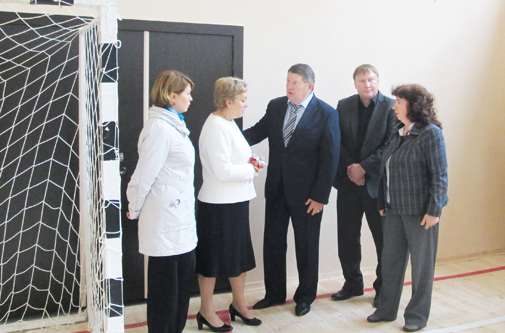 Следующей «контрольной точкой» для высоких гостей стал, расположенный в том же здании КДЦ спортзал. В 2015 году полностью заменили душевые и туалеты, подключили холодное и горячее водоснабжение. Старые окна сменили на стеклопакеты. В этом году работы продолжились. Обновили электропроводку, светильники, сделали косметический ремонт потолка и стен. Самым главным изменением в зале стал пол, его застелили специальной доской, устойчивой к потёртостям. Извечная коричневая половая краска канула в прошлое. Как и библиотека, зал тоже прибавил в площади.