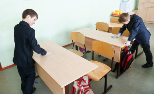 В настоящее время ученики убирают кабинеты, но для этого требуется разрешение родителей. Если родители не хотят, чтоб «сыночка-корзиночка» или «лапочка-дочка» стояли посреди класса с половой тряпкой, они могут написать письменный отказ.