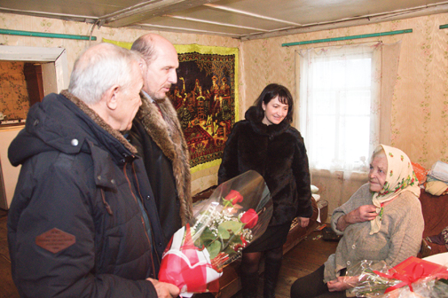 Приезда гостей в свой день рождения она ждала, но к такому вниманию даже в юбилей не привыкла. Вместе с поздравлением Президента России председатель Собрания депутатов Псковского района Андрей Неофитов вручил ей большой букет цветов и подарок, пожелал крепкого здоровья. Председатель совета ветеранов и инвалидов Николай Александров, поздравляя именинницу с круглой датой, отметил, что в Псковском районе в настоящее время проживает более 500 малолетних узников. Это особая категория людей, которые заслуживают особого уважения и почестей за то, что с честью выдержали все выпавшие на их долю трудности. Он также вручил ей букет цветов и подарок. С подарком приехала и глава Торошинской волости Алевтина Пылева. Она отметила, что Анна Васильевна, как и другие ветераны, всегда могут рассчитывать на помощь и поддержку администрации сельского поселения.