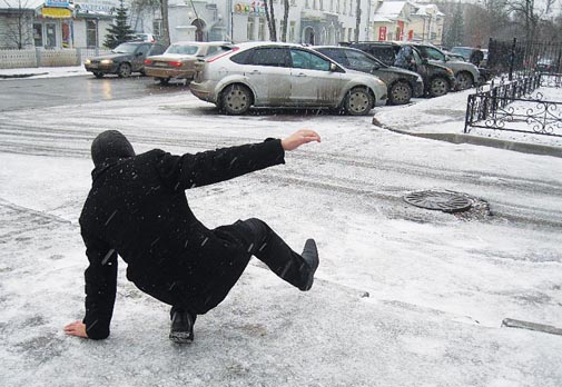 Кстати, на курсах по восточным единоборствам, например, дзюдо, новобранцев сначала учат правильно падать, и лишь потом допускают до обучения «приёмчикам». По мнению некоторых спортсменов, подобные умения очень пригодятся в гололёд. Сплошная польза от спорта.