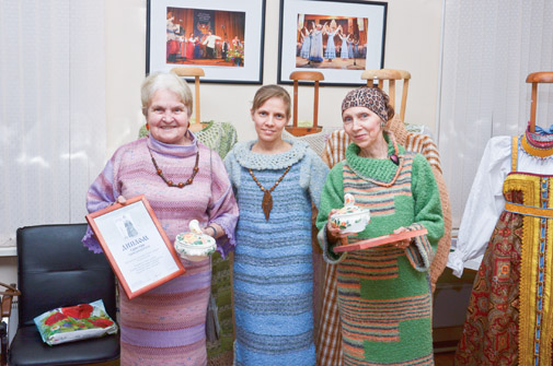 В конкурсе же костюмов тоже случилось открытие года и неожиданность. Гран-при получил творческий коллектив мастериц из Изборска за коллекцию народной одежды в новой технике. Лииви Анцевна Покровская, Ирина Сергеевна и Юлия (мама с дочерью) Белоусовы и на торжество пришли в своих тканых платьях, способных вызвать зависть у любой модницы. Лииви Покровская возрождает в Изборске традиции ткачества вот уже более десяти лет, и славится своим мастерством не только дома, но и далеко за пределами псковской земли. Признается, что идея ее учениц Белоусовых шить из тканых полотен одежду стала для нее неожиданной и поначалу совсем не впечатлила. Впечатлили результат и фантазия мамы и дочери, увидевших наряды в том, что мастерица считала полотном - на стол или на пол. На праздник Лииви Анцевна надела удивительное розово-сиреневое платье из подготовленной коллекции - теплое и дышащее, мягко сидящее и сохраняющее форму, традиционное и модернистское одновременно. Предки, чьим искусством восхищались хранительницы наследия, могли бы гордиться достойными преемницами.