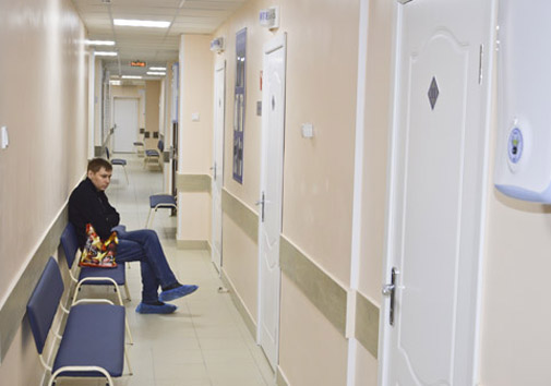 Пожилой мужчина неторопливо изучает расписание. Потом он испытал на мягкость ближайший стул, с любопытством провел пальцем по обоям, и с торжественностью туриста перед пирамидой Хеопса глянул на потолок. Судя по всему у посетителя не было конкретной цели - он пришел на разведку. И увиденное явно ему понравилось. А вот псковичка Надежда Баранова, напротив, дожидалась врача.