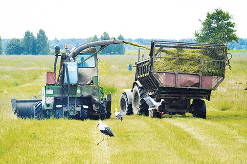 - Переувлажнение почвы добавляет трудностей, бывает, и буксировать комбайн приходится. На этот случай трос у меня заготовлен. Так что справимся. Тем более помощники у нас есть. Все в белом, как в костюме, - улыбается механизатор и показывает на большую группу аистов, что ходят по следам трактора. Благородные птицы не упускают возможности полакомиться дарами природы.