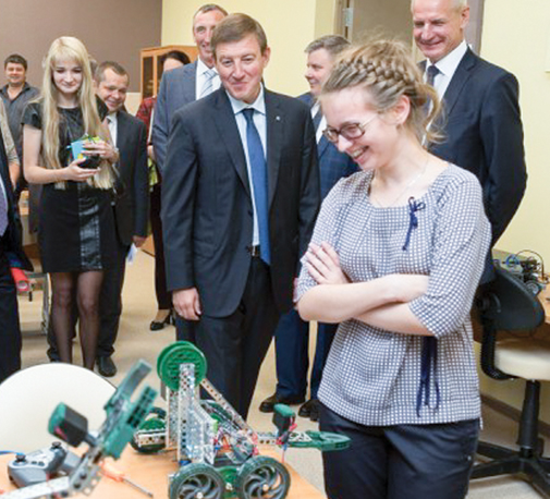 На данный момент технопарк уже наполнен оборудованием и вовсю осваивается преподавателями, учащимися и студентами ПсковГУ. В классе робототехники Губернатору уже представили двух собранных на скорую руку роботов-манипуляторов. В создании и программировании подобной техники смогут упражняться не только учащиеся инженерного направления, но и желающие посещать соответствующие кружки школь -ники со всего города. Класс 3D-моделирования удивил гостей наличием достаточного количества электронных кульманов, большим 3D-принтером и электронной 3D-доской: подобное оборудование в области имеется, в лучшем случае, в одном-двух проектно-конструкторских центрах. Порадовало гостей также оснащение классов технологии: швейные машинки, оверлоки, гладильное оборудование, токарные и фрезерные станки, столярные мастерские - современное, эстетичное, удобное в обращении оборудование этих классов способно не только увлечь, но и стать убедительным профориентационным вектором для многих ребят.