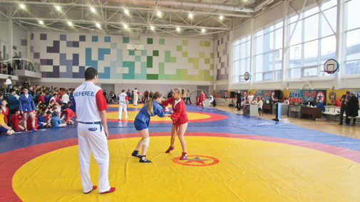 Судья объявляет фамилии юных спортсменов, после команды бойцы начинают схватку. Это проверка делом своих навыков, никакой злобы у соперников, лишь спортивный азарт. Большинство спортсменов имеют группы поддержки из родителей, и, что особенно интересно, присутствует много мам, которые привели на соревнования своих дочерей. Девочек было не меньше трети от общего числа участников. Кстати, некоторые из самбисток сознательно предпочли борьбу танцам.