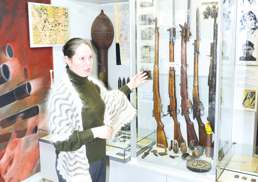 Руководитель военно-исторического отдела Елена Маркова и старший научный сотрудник Ирина Никифорова проводят нас к нужному залу, и мы невольно восхищаемся многообразием штыковых винтовок и прекрасно сохранившимся (а чаще - отреставрированным) оружием. В экспонатах нет повторов, десятки штыков, винтовки Мосина, Манлихера и Маузера, шашки, причем оружие производства едва ли не всех возможных стран и континентов, но - исключительно «местного поднятия» поисковиками, свидетельство боев гражданской, а затем и Великой Отечественной войн.