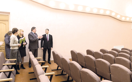 Знакомство началось с отремонтированного фойе. Здесь тепло, светло и уютно, одним словом, не стыдно принимать гостей. А концертный зал на 200 мест отделан «с иголочки». Особая гордость и радость сотрудников КДЦ - новые кресла. Именно на них врио Главы региона обратил внимание в первую очередь. Потрогал, убедился, что мягкие, и остался доволен.