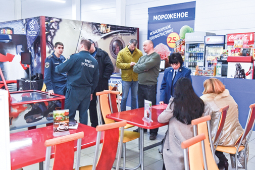 Помимо проверок проводились и пожарно-тактические учения. Так, в здании гипермаркета «Империал» в Пскове состоялось занятие дежурных караулов по теме: «Тушение пожаров на объектах с массовым пребыванием людей». Согласно тактическому замыслу занятия, в игровой комнате на втором этаже здания возник пожар. Персонал сообщил об условном пожаре в пожарную охрану и руководству магазина. Администрация объекта оповестила по громкоговорящей связи сотрудников и посетителей гипермаркета, провела эвакуацию людей из помещений, организовала встречу прибывающих пожарных подразделений.